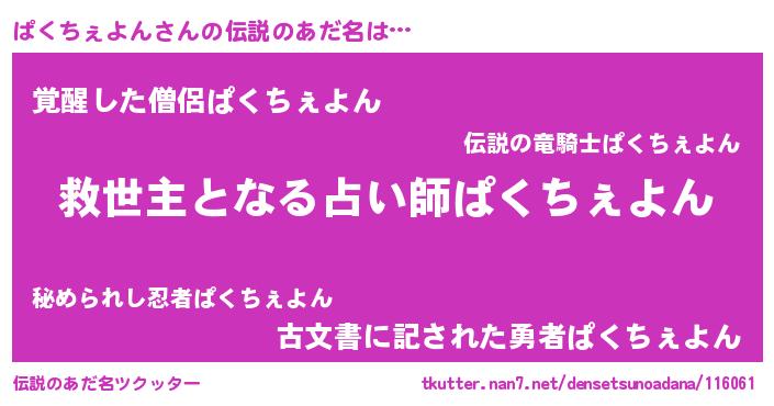 | ヒーロー風カッコイイあだ名 | 『天空の使者ぱくちぇよん』 |
