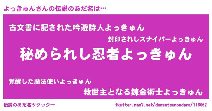 | ヒーロー風カッコイイあだ名 | 『ウルトラよっきゅんマン』 |
