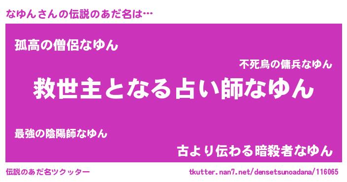 | ヒーロー風カッコイイあだ名 | 『天空の使者なゆん』『黄金騎士ナユ』 |