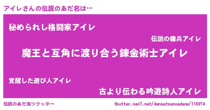 | ヒーロー風カッコイイあだ名 | 『愛の使者アイレ』『ウルトラアイレマン』 |