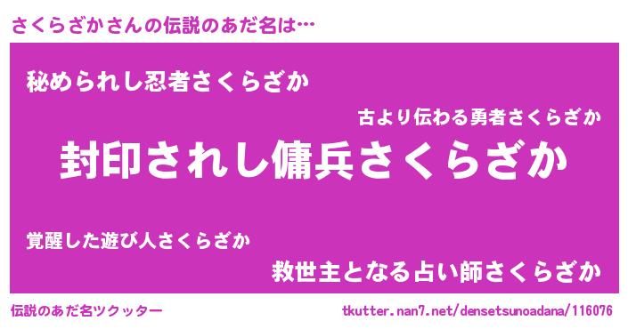| 胡散臭い通販商品みたいなあだ名 | 『あなたにだけ特別に提供する限定10本のレアな日本酒…その名も「さくらざか」』 |