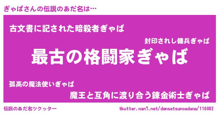 | ファンタジー風あだ名 | 『エターナルギャバー』『ゼギャトゥ』 |