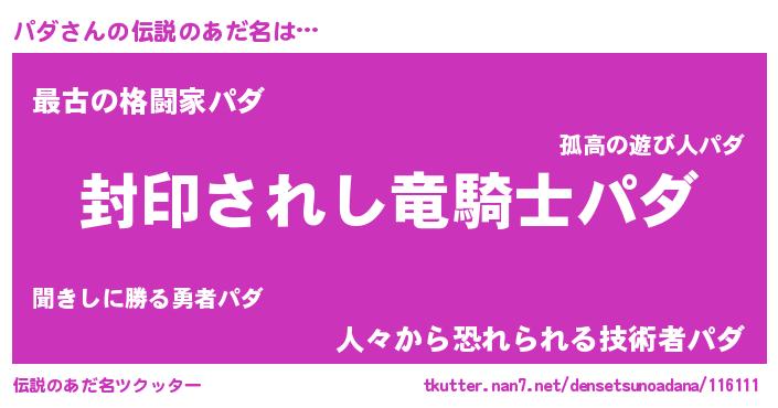 | 男性向けラノベタイトル風あだ名 | 『パダアートオンライン』『緋弾のパダ』 |