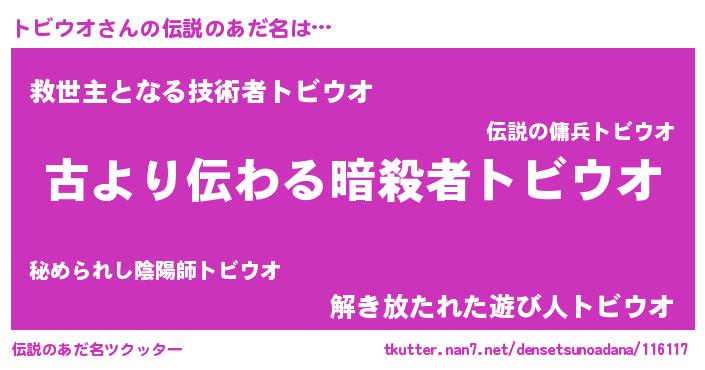 | ヒーロー風カッコイイあだ名 | 『ネオトビウオ』『仮面トビダー』 |