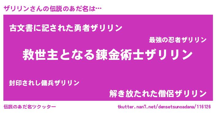 | 意味不明あだ名 | 『自称ザリリン』『永久保存ザリリン』 |