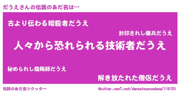 | ヒーロー風カッコイイあだ名 | 『正義の使者だうえ』『仮面ダウダー』 |