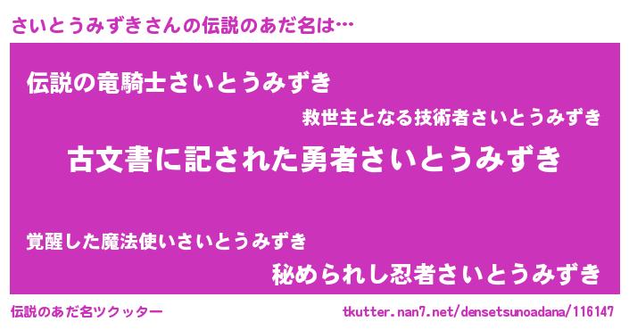 | ヒーロー風カッコイイあだ名 | 『ネオサイトウミズキ』 |
