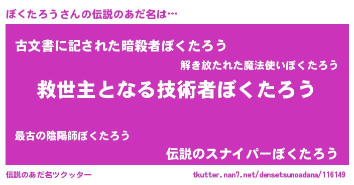 | ヒーロー風カッコイイあだ名 | 『天空の使者ぼくたろう』『仮面ボクダー』 |