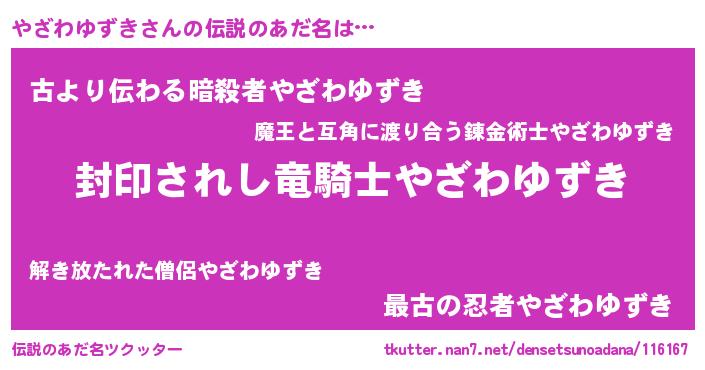 | ヘコむあだ名 | 『やざふぇ~』『やざわゆずき(笑)』 |