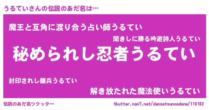 | ヒーロー風カッコイイあだ名 | 『ウルトラうるていマン』『幻影騎士ウル』 |
