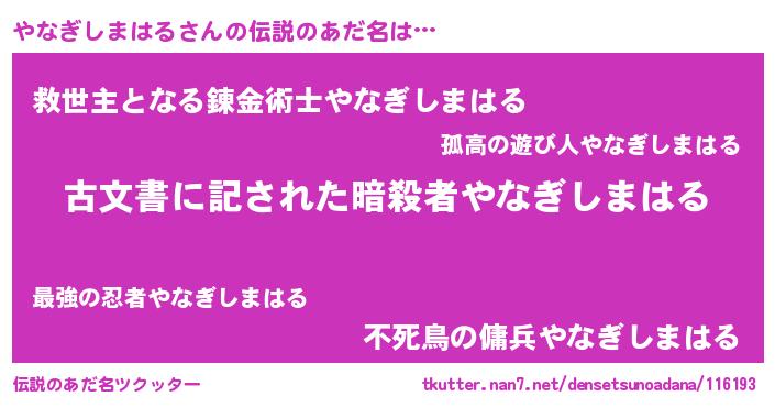 欧米人風あだ名 | 『やなぎしまはる・ステッグマイヤー』 |