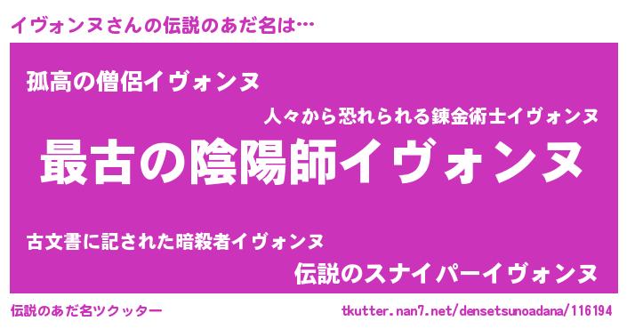 | 欧米人風あだ名 | 『イヴォンヌクリステル』 |
