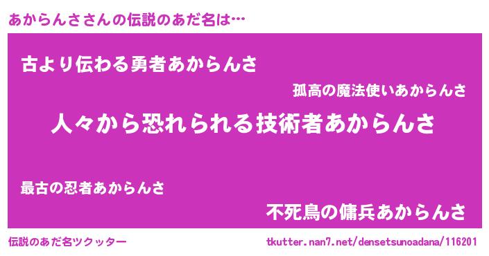 | ヒーロー風カッコイイあだ名 | 『正義の使者あからんさ』『仮面アカダー』 |