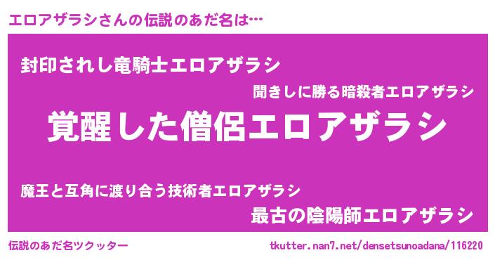 | ヒーロー風カッコイイあだ名 | 『究極戦士エロアザラシ』『炎刃騎士エロ』 |
