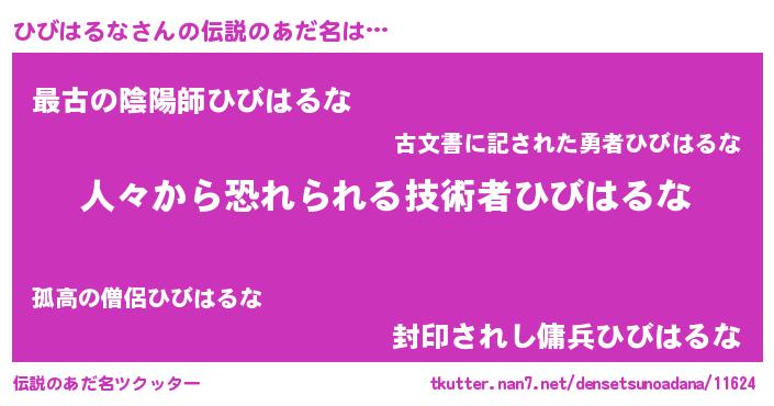 | 意味不明あだ名 | 『住所不定無職ひびはるな(3歳)』 |