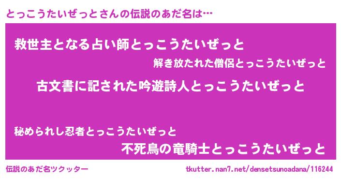 | ヘコむあだ名 | 『とっこうたいぜっと(小並感)』『とっを』 |