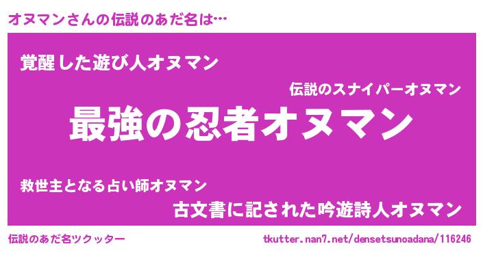 | 意味不明あだ名 | 『オヌマンフォーエバー』『自称オヌマン』 |