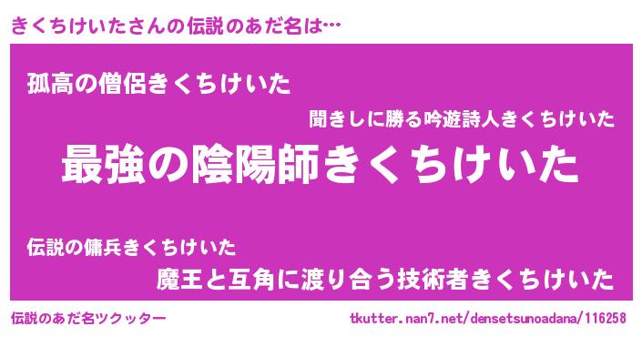| ファンタジー風あだ名 | 『エターナルキクチケイター』 |