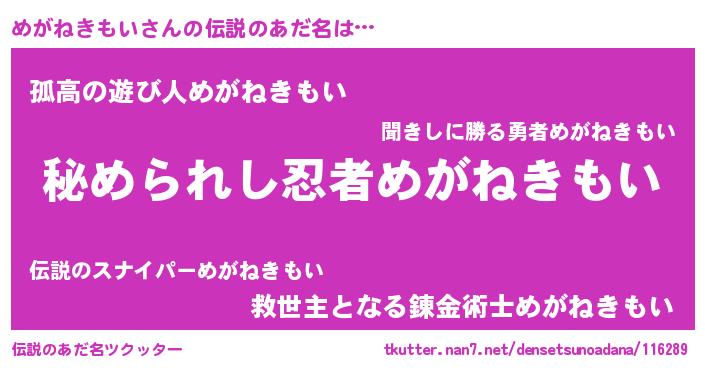 | 可愛いあだ名 | 『めがちー』『めっがぃー』 |