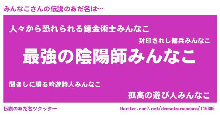 | ヒーロー風カッコイイあだ名 | 『ウルトラみんなこマン』『魔戒騎士ミン』 |