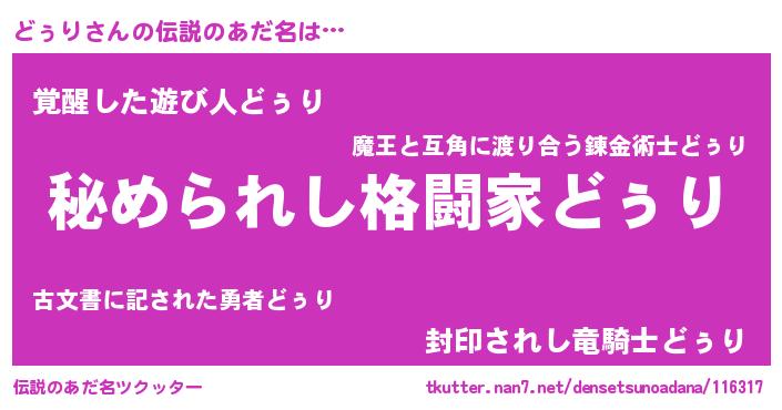 | 意味不明あだ名 | 『どぅりフォーエバー』『自称どぅり』 |