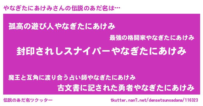| 意味不明あだ名 | 『住所不定無職やなぎたにあけみ(71歳)』 |