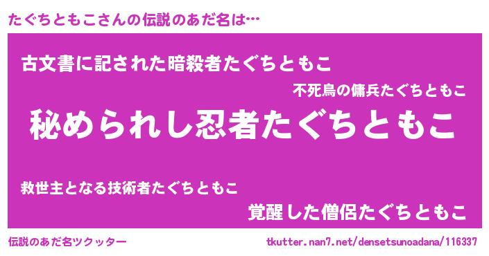 | ファンタジー風あだ名 | 『エターナルタグチトモコー』 |