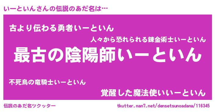| 女子向けラノベタイトル風あだ名 | 『いーといんの玉の輿計画!』 |