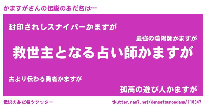 | ヒーロー風カッコイイあだ名 | 『天空の使者かますが』『黄金騎士カマ』 |
