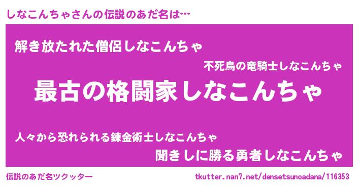 | ヒーロー風カッコイイあだ名 | 『ウルトラしなこんちゃマン』 |