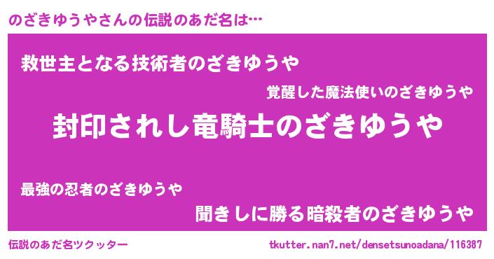 | 意味不明あだ名 | 『住所不定無職のざきゆうや(5歳)』 |