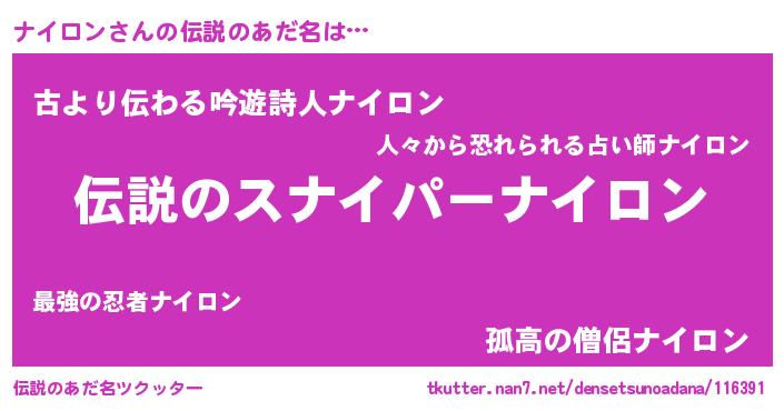 | ヒーロー風カッコイイあだ名 | 『スーパーナイロン』『ネオナイロン』 |