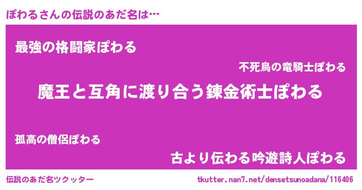 | 意味不明あだ名 | 『住所不定無職ぽわる(95歳)』『自称ぽわる』 |