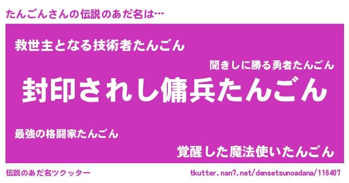 | ヒーロー風カッコイイあだ名 | 『スーパータンゴン』『仮面タンダー』 |