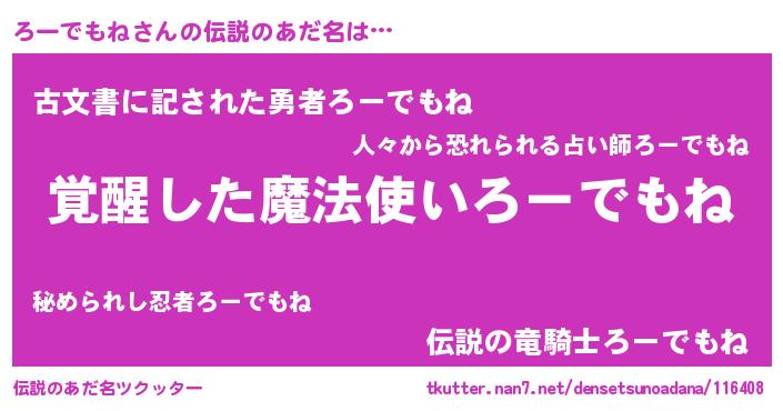 | 意味不明あだ名 | 『とにかく怪しいろーでもね』 |