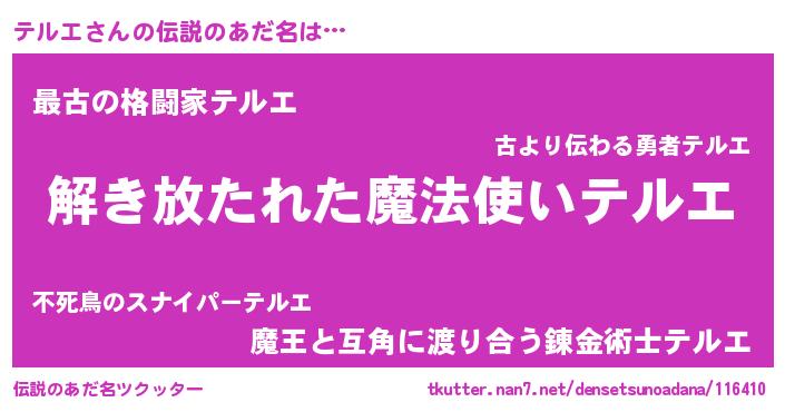 | 胡散臭い通販商品みたいなあだ名 | 『伝統あるサプリメント…その名も「テルエ」』 |