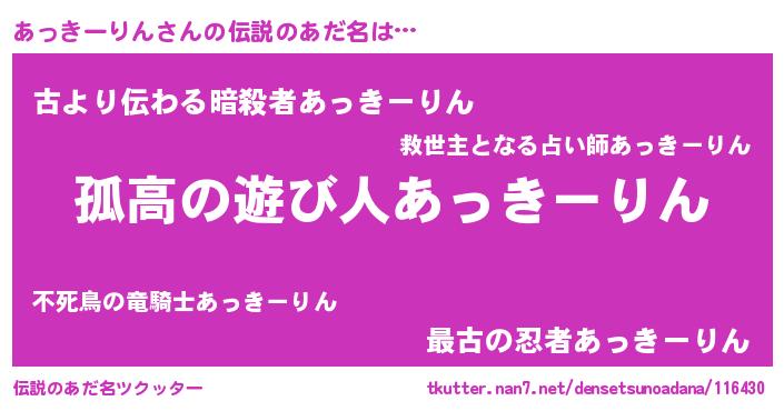 | ヒーロー風カッコイイあだ名 | 『黄金騎士アッ』『ネオアッキーリン』 |