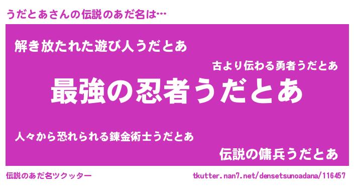 | ヒーロー風カッコイイあだ名 | 『ウルトラうだとあマン』『仮面ウダダー』 |
