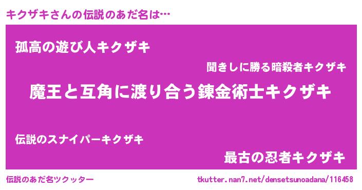 | ヒーロー風カッコイイあだ名 | 『慈愛の使者キクザキ』『黄金騎士キク』 |