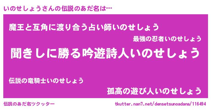 | 意味不明あだ名 | 『永久保存いのせしょう』 |