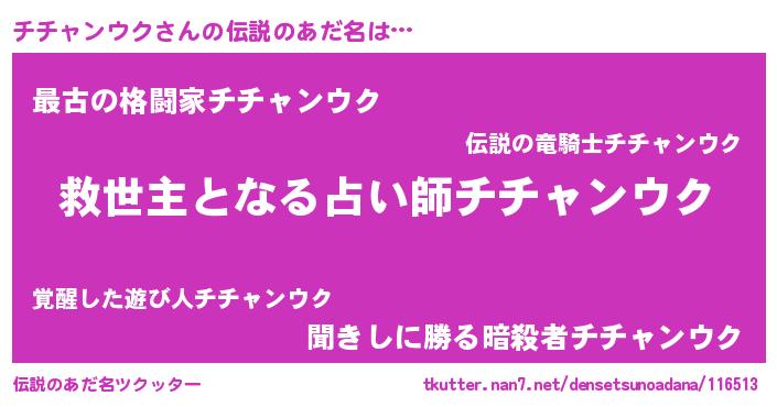 | 男性向けラノベタイトル風あだ名 | 『ノーゲーム・ノーチチャンウク』 |