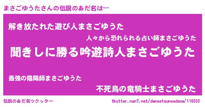 | ヒーロー風カッコイイあだ名 | 『ネオマサゴユウタ』『幻影騎士マサ』 |