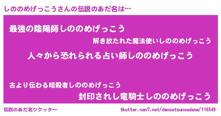 | 欧米人風あだ名 | 『ダレノガレしののめげっこう』 |