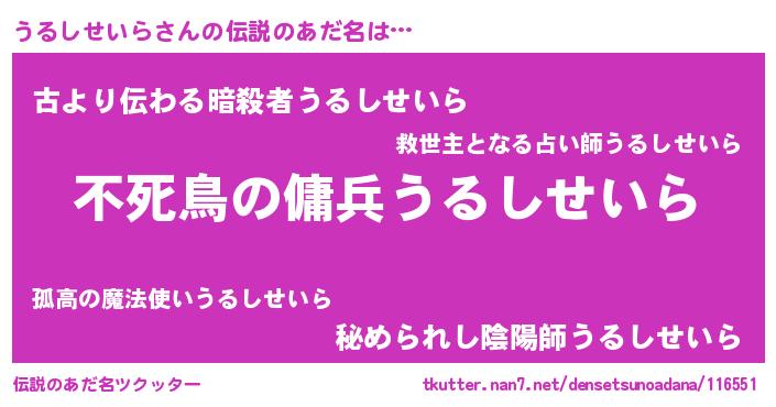 | ヒーロー風カッコイイあだ名 | 『サイバー戦士ウルシセイラ』 |