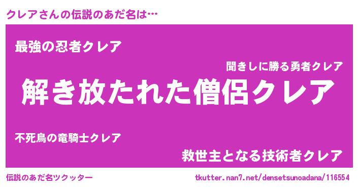 | 意味不明あだ名 | 『とにかく怪しいクレア』 |