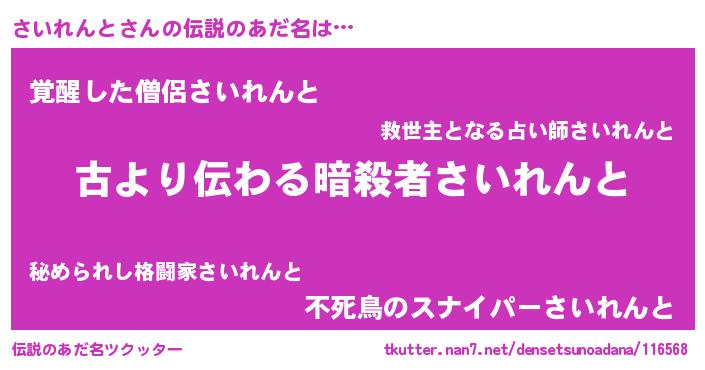 | 意味不明あだ名 | 『住所不定無職さいれんと(40歳)』 |