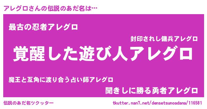 | 意味不明あだ名 | 『とにかく怪しいアレグロ』 |
