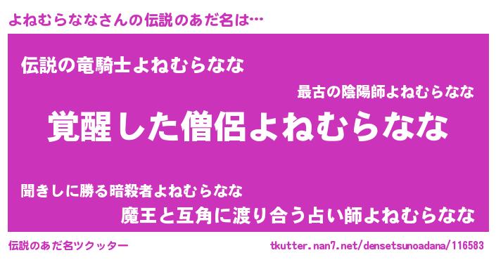 | 意味不明あだ名 | 『とにかく怪しいよねむらなな』 |