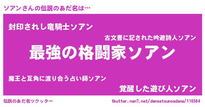 | 意味不明あだ名 | 『ソアンフォーエバー』『自称ソアン』 |