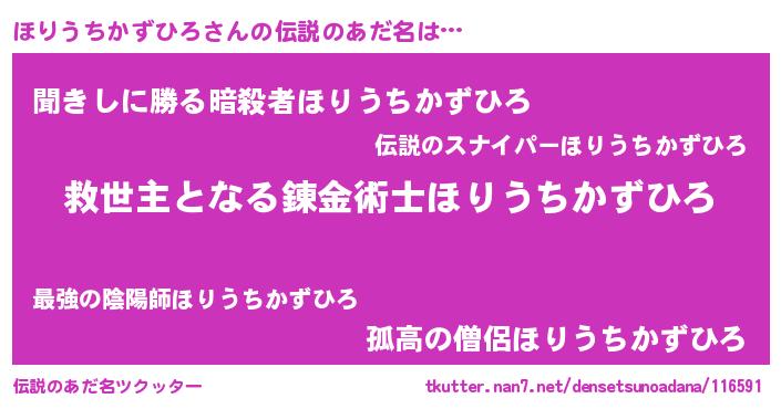 | 男性向けラノベタイトル風あだ名 | 『ノーゲーム・ノーホリウチカズヒロ』 |
